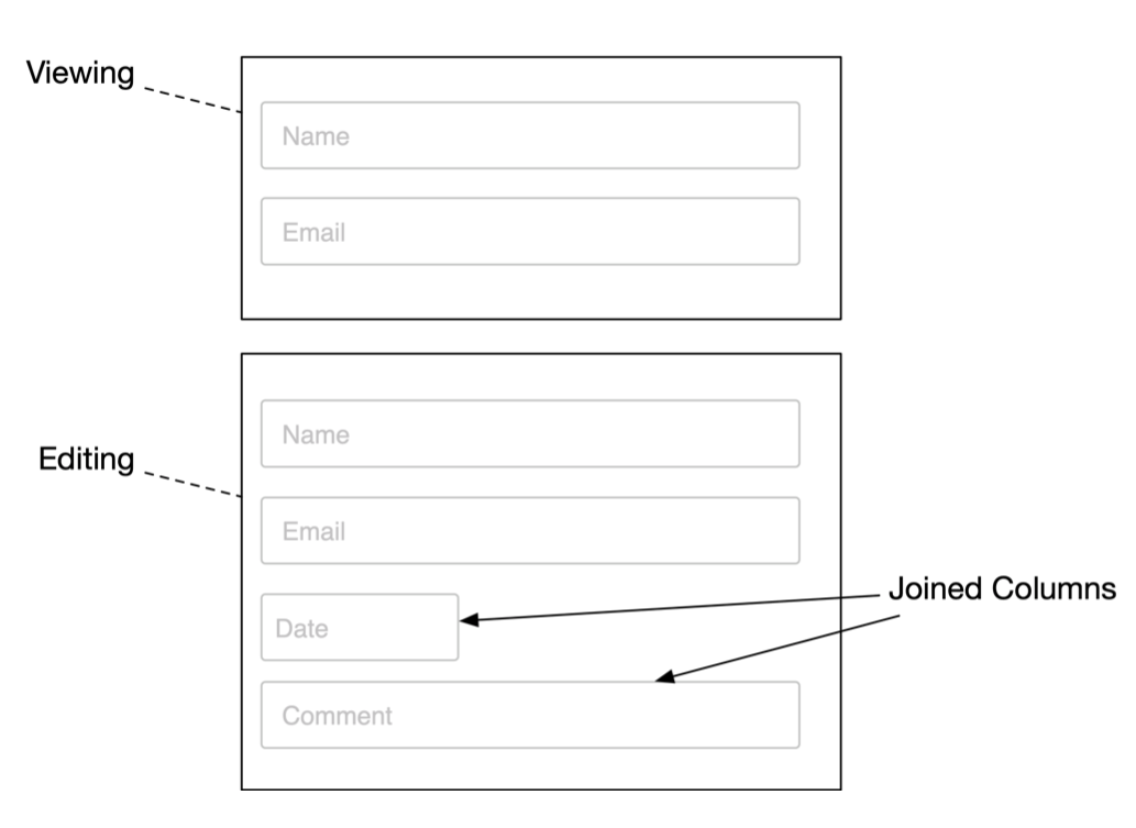 Upon editing, creates a new record in the joined table, then binds it to the form. Viewing voids the join and hides the joined fields on the form.